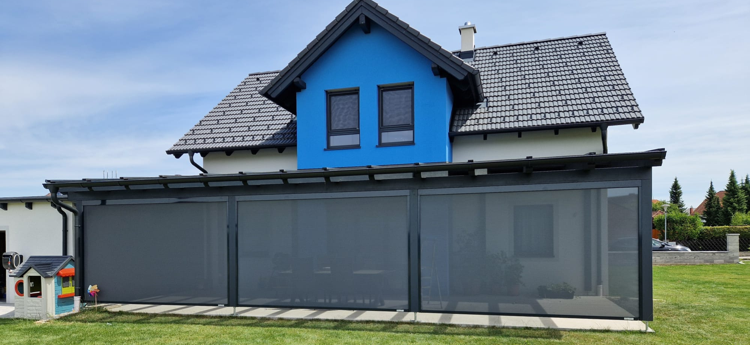 Outdoor Stoffrollos sind eine ideale Stoffrollos außen als Beschattungslösung für Einfamilienhäuser, wo LOMAX die meisten Installationen durchführt. Dank ihrer Eigenschaften werden sie auch gerne als Außenrollos für Pergolen eingesetzt .